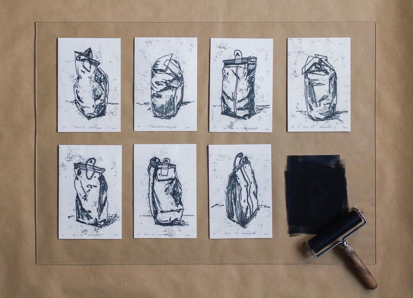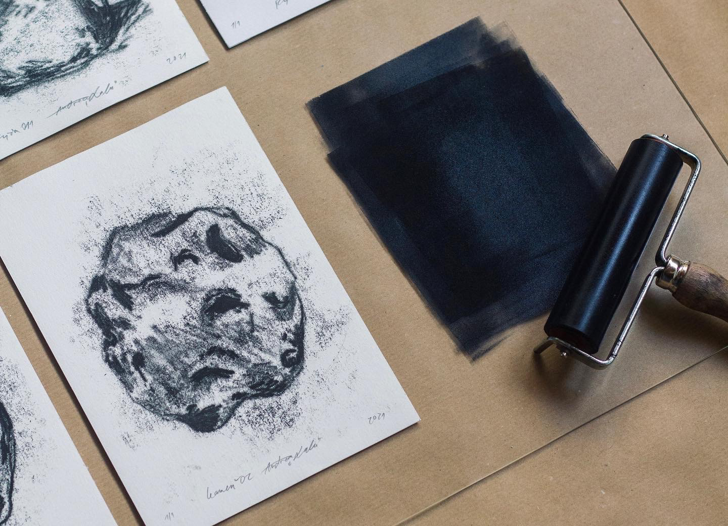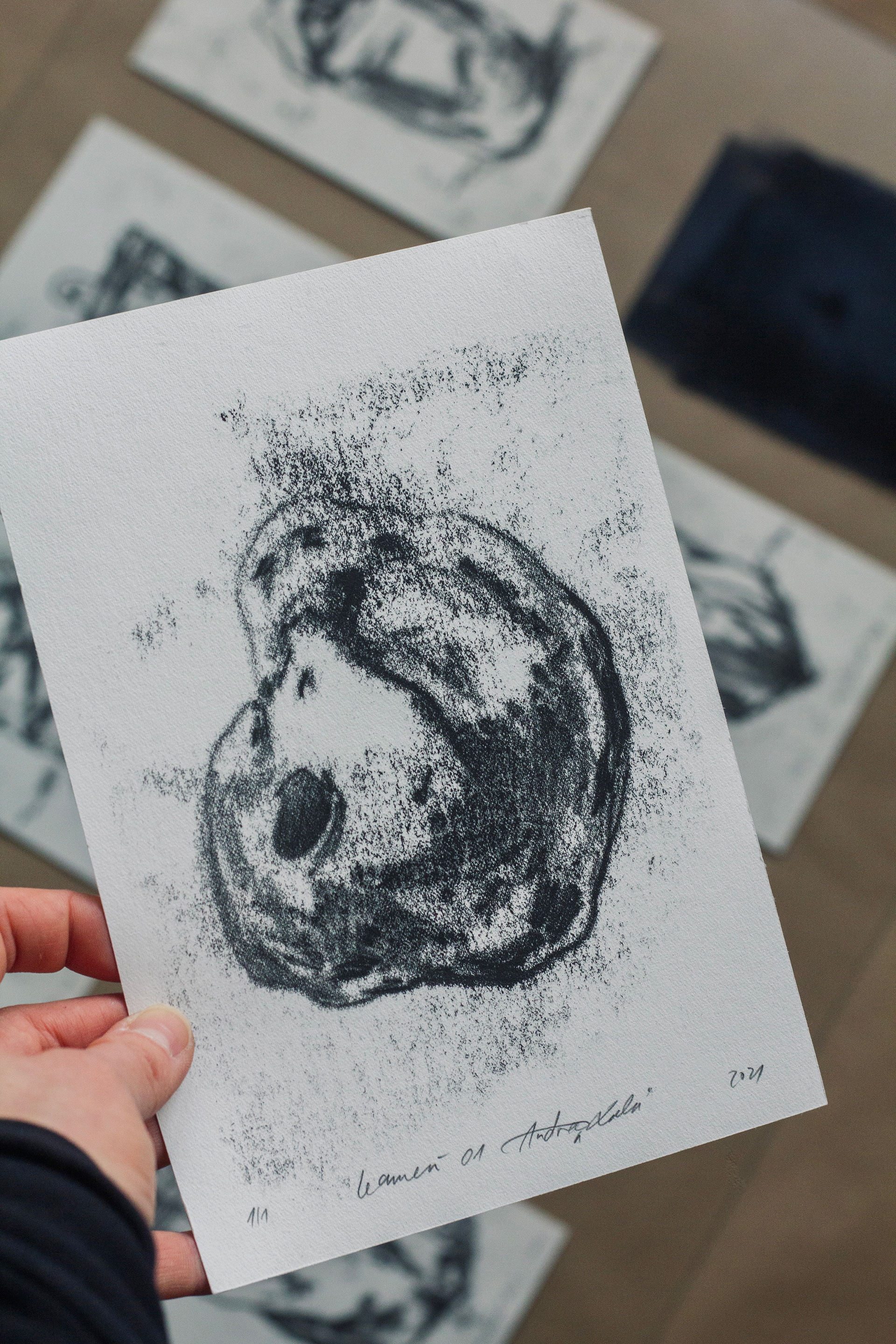 Monotype print rice and stones