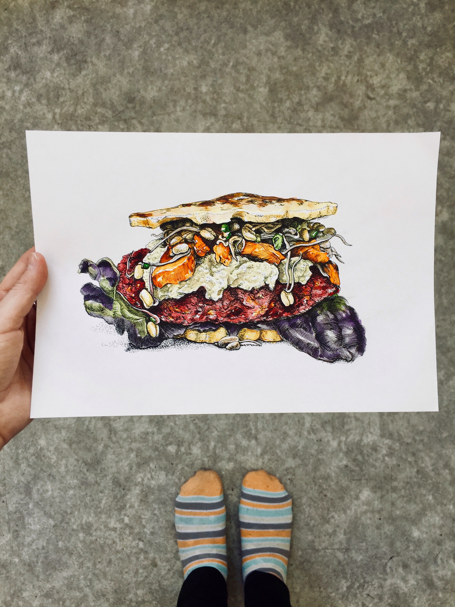 VEGAN BURGER SPEED ART DRAWING + WATERCOLOR PAINTING